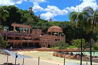 A következő napon gyalogosan jártuk be Sun City-t. A modern üdülőközpontot 1979-ben, Johannesburgtól kb. 150 km-re északnyugatra hozta létre Sol Kerzner, litván származású zsidó, akinek szülei a 20-ik század elején vándoroltak ki az akkor Oroszországhoz tartozó Litvánia területéről. Sun City az alapításakor egy kaszinóváros és szórakoztató központ volt. Aztán kitalálták hozzá az Elveszett város legendáját, és meg is építették 1992-ben. A Lost City (Elveszett város) nevű nagy kiterjedésű új városrészbe a Dzsungel ösvényen, majd az Idő hídján, elefántszobrok sorfala között jutottunk be. Az Elveszett városban egy képzelet szülte ősi civilizáció tárul a látogató elé. Van itt minden, amit az ember ősidőktől napjainkig a szórakoztatás érdekében kitalált: őskori barlangrajzok, ókori amfiteatrum, mesterséges vízesések és strandok, játékkaszinók, luxus bevásárlóközpont, egzotikus éttermek, golfpályák és egyéb sportlétesítmények. Mindezt végigjárhattuk, megnézhettük egyszerűen csak azért, mert Sun City-ben szálltunk meg. A Lost City városrésznek az úgymond koronája viszont a briliáns, gyönyörű Palota. Megszámlálhatatlan lépcsőfok vezet fel a Palotához, amely osztályon felüli luxusszálloda. Ezt azonban csak kívülről láthattuk, a kapuja nem tárult fel előttünk.