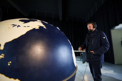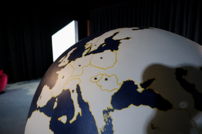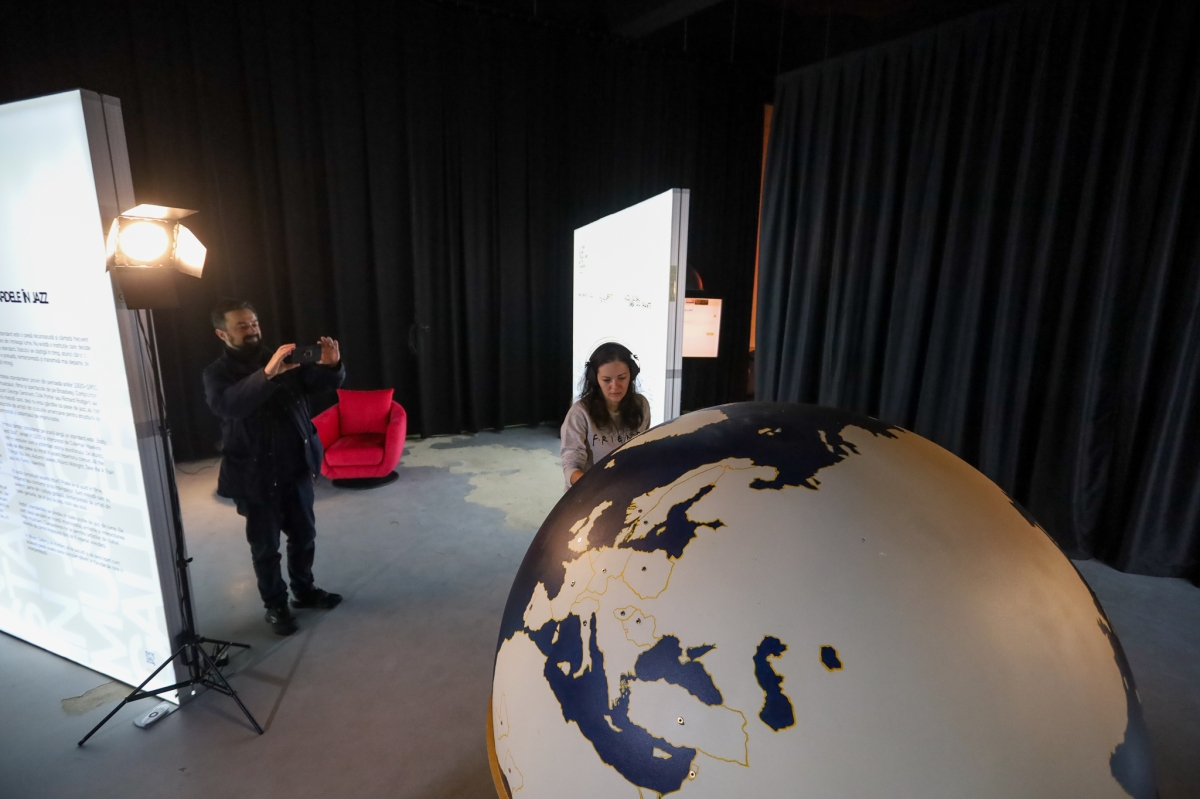 A kiállítás központi részén földgömb található, ahol különböző országok zenéit ismerhetjük meg, mégpedig úgy, hogy a fejhallgatónkat oda csatlakoztatjuk, amelyik nemzet muzsikáját meghallgatnánk. A multimédia gömb 25 hangponttal rendelkezik, én Magyarországra csatlakoztam rá, és zenefelismerő applikáció segítségével próbáltam kideríteni, mi szólhat éppen, azonban nem jártam sikerrel. Az applikáció szerint Romániánál Maria Tănase, Până Când Nu Te Iubeam című szerzeménye szól.