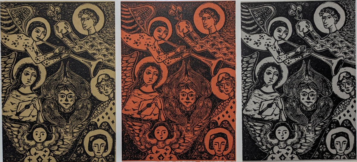 A digitális világban a kapcsolatfelvétel és a szervezés történik meg, minden, ami izgalmas és lényeges, az analóg. Az 1970-es években kialakuló mail arthoz hasonlóan itt sincs nevezési díj, sem zsűrizés, az alkotások és az alkotók ezen az alternatív útvonalon jutnak el a közönséghez. Így kaptam nyomatot lengyel tetoválóművésztől, ausztrál tanártól, angol designertől és még számos más kreatív, tehetséges alkotótól, akik számára ugyanúgy fontos a kézművesség, a képeslapok és a posta. Cserébe pedig hozzájuk is megérkeztek az én angyalaim, akiket erdélyi középkori templomok falképei inspiráltak.