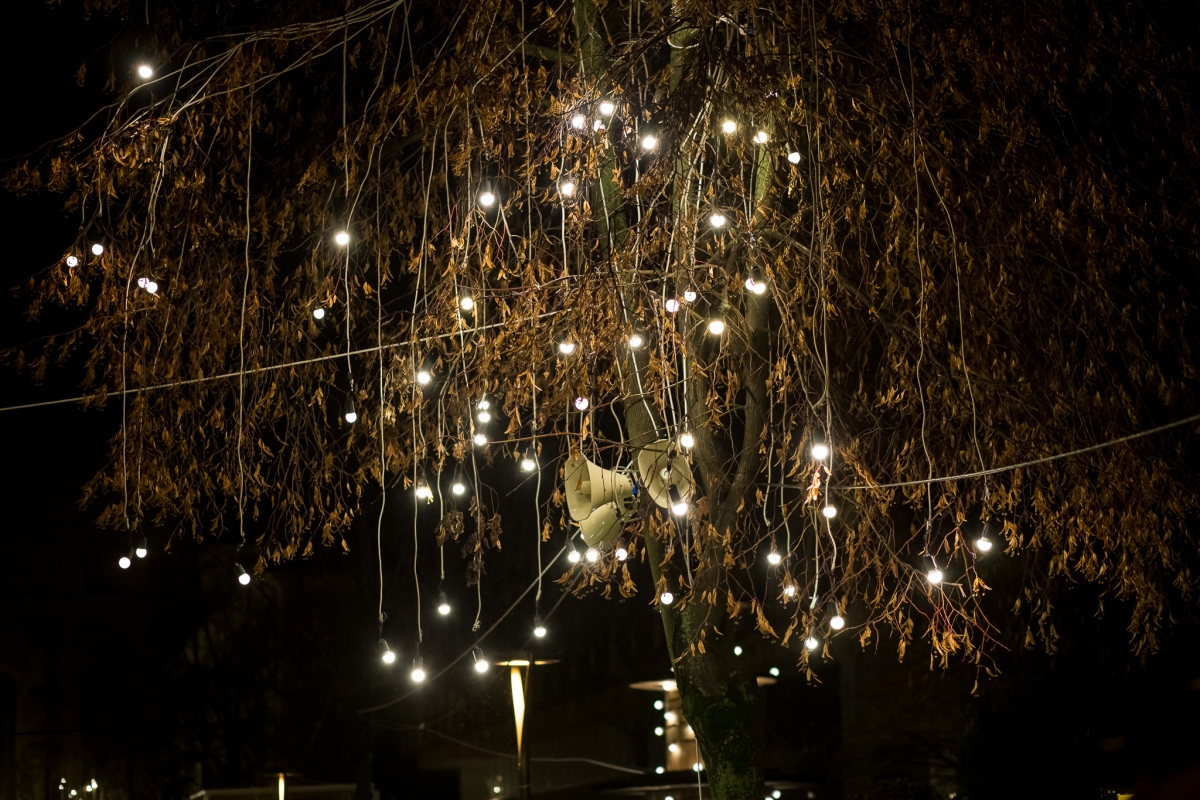 Az Egyetem / Universității utcában felállított Karácsonyi erdő elnevezésű installáció hétméteres, ívben elrendezett fákból áll. Ez az alkotás nem a Lights Onhoz tartozik, hanem az Angyalok kórusával együtt a polgármesteri hivatal kezdeményezése. Itt is láthatunk, hallhatunk multimédia-műsort a következő órákban: 17.45, 18.45, 19.45, 20.45 és 21.15.