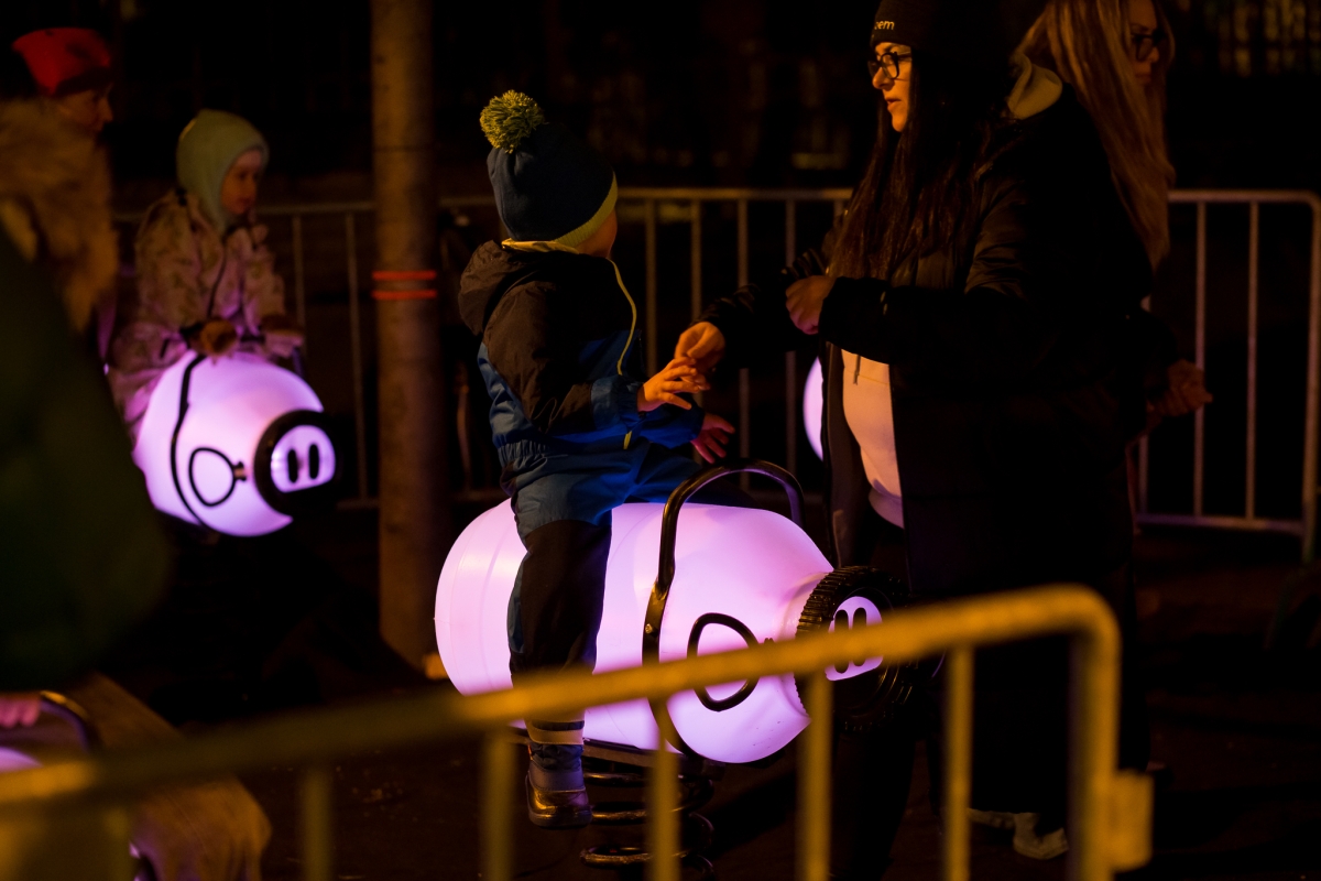 A régiek mellett a Csehországból érkező Disznófarm (Pig Farm) nevű installációt is megtaláljuk, amely újrahasznosított vízhordó hordókból készült, és rugókon ringatózó malacfigurákat mutat be. A helyszínen a Lights On önkéntesei segítettek a gyermekeknek, hogy felülhessenek a kis malacokra.