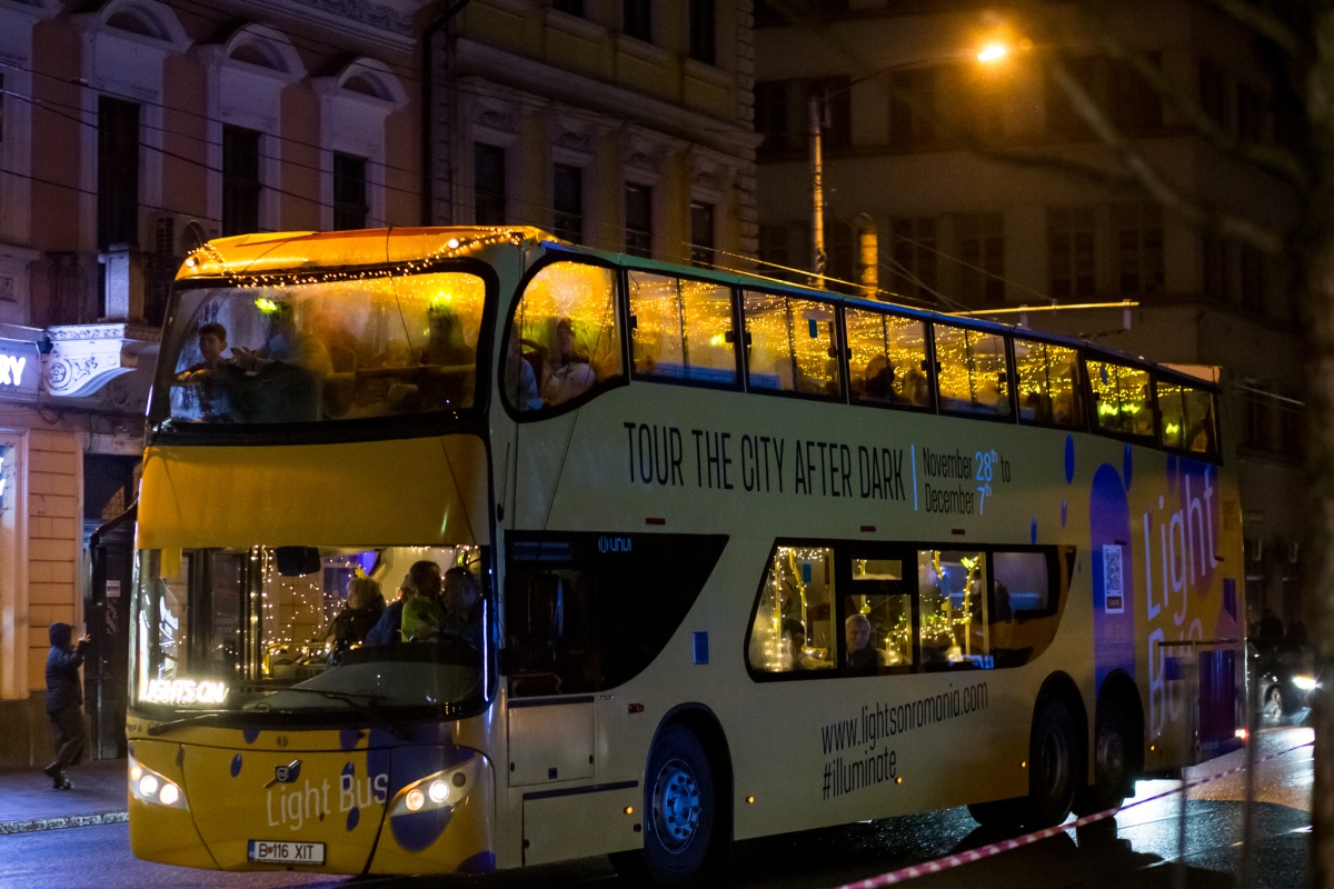 A fényfesztivál egyik legnagyobb újdonsága az emeletes fénybusz, amely december 7-éig közlekedik a városban. Járat indul mindennap 17.30-kor, 19.00-kor, 20.15-kor, valamint 21.30-kor a Házsongárdi temető melletti buszparkolóból (Petőfi / Avram Iancu utca 20. szám).