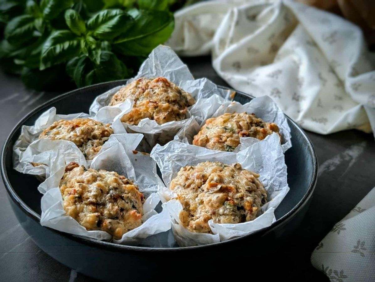 A muffin talán a legegyszerűbb sütemény a világon, és mivel nem desszertnek szántam, sós változatot készítettem. A lányom nagy spagettirajongó, ezért gondoltam, hogy ez a mediterrán muffin, ami az olasz konyha klasszikus ízeit ötvözi, könnyed, sós falatka – illatos bazsalikommal, zamatos paradicsommal és olvadó sajttal – a kedvére lesz. Amikor nincs lehetőség tésztát főzni, s kirándulásra felcsomagolni, jól jön az egyszerű muffin, hiszen puha, illatos, és minden falatjában ott a paradicsom, a sajt, az olajbogyó és a friss bazsalikom. Mint egy minispagetti, csak sokkal egyszerűbben, kézbe fogható formában.