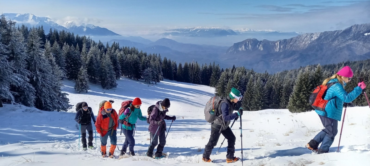 Szombaton reggel nyolc órakor indultunk az első túrára: a cél a Csukás-csúcs meghódítása volt. Az autókat a Bratocsa-hágónál hagytuk, üdvözöltük a nagyszebeni csapatot, a túrabakancsokra rögzítettük a rendkívül hasznos, csúszásgátló „hágómacskákat”, s nekivágtunk az útnak. Kiváló döntés volt a kramponok használata, a vékony hóréteg alatt ott lapult a sunyi jég.