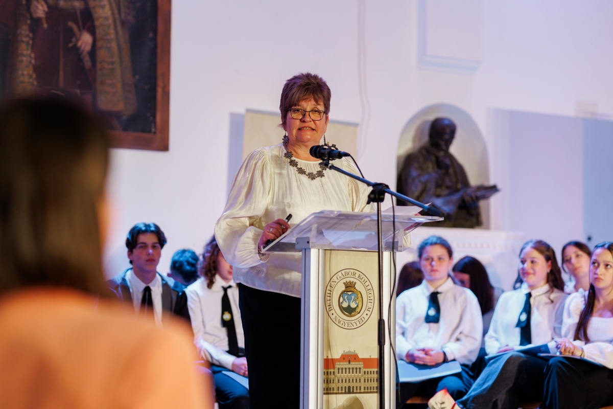 Galambfalvi Angyalka igazgató-helyettes tolmácsolta Szőcs Gyula Kálmán alapítványi alelnök, a kollégium lelkes támogatója üzenetét: „Ünnepi megemlékezésünk (…) látszólag önmagunk ünneplése, valójában egy sikertörténet felmutatása. Sikertörténet, a Kárpát-medence talán legnagyobb civil szárnyalása, mely szellemében szervesen építkezett a Bethlen Gábor-i és Apafi Mihály-i Statútumra.”