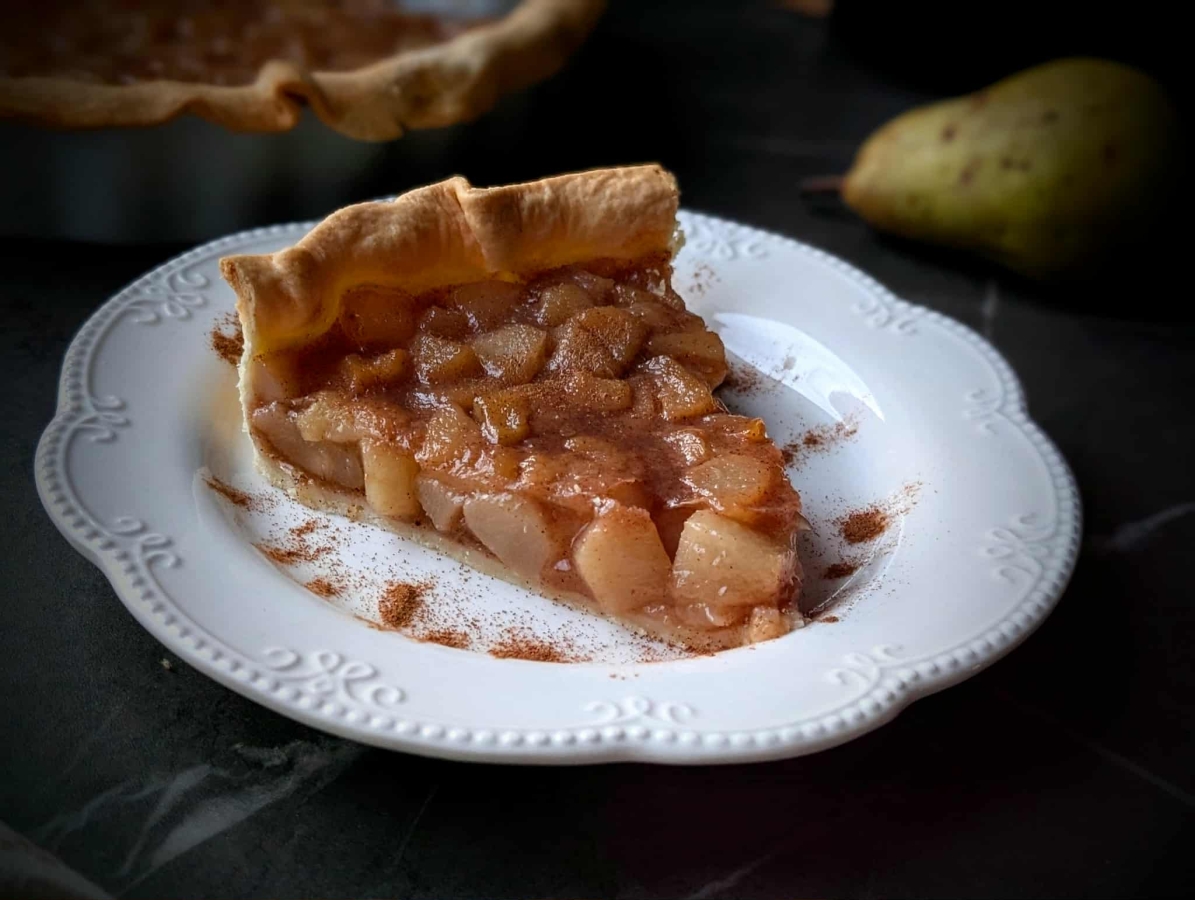 Tény és való, nagyon körtés ez a pite, vékony a tésztája, és jó sok körte van rajta. Aki a klasszikusabb változatot szeretné elkészíteni, az dolgozhat két tésztával. Alul van az egyik, rajta a töltelék, amit egy újabb pitetésztaréteg fed be. Ez esetben feltétlenül kell a tetején rést hagyni, ahol majd sütés közben a gőz távozhat. Vághatunk egy nagyobb X-et a közepére, az is megteszi.