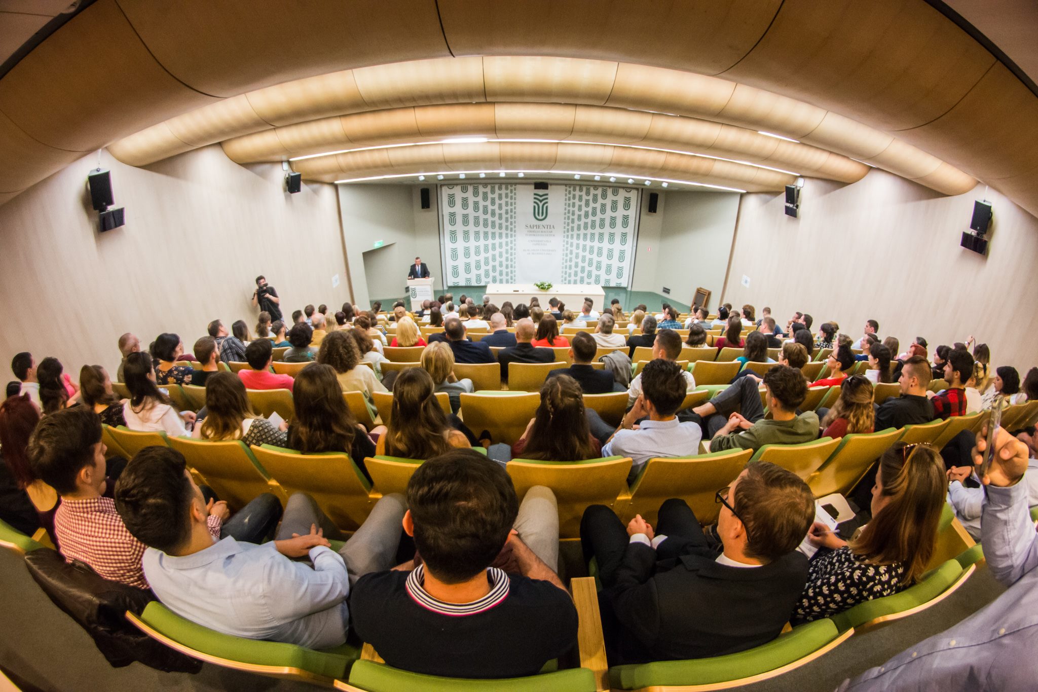A tanévnyitó ünnepséget Tonk Márton, a Sapientia EMTE Kolozsvári Karának dékánja nyitotta meg. Ünnepi beszédében elsősorban az elsőéveseket köszöntötte. – Olyan egyetem kapuin léptetek most be, ahol minden lehetőségetek megvan arra, hogy tudásotokat elmélyíthessétek, hogy a szó legnemesebb értelmében tudókká, az erdélyi magyar értelmiség új generációjává váljatok. Nem pusztán magatok javára, hanem az egész közösségünk javára. Mifelénk ugyanis a tudással sajátos felelősség is jár – hangsúlyozta Tonk Márton. – Az erdélyi magyar kisebbségi lét valóban többet vár el tőletek, mint másoktól. Nektek kell az erdélyi magyarság erős középosztályává válnotok, olyan társadalmi csoporttá, amely nemcsak a tudományok terén hoz újat, hanem a közösség megtartásában is élen jár. Kisebbségi létben a tudó ember elsődleges feladata nem csupán az öncélú szakmai tevékenység, hanem a nemes értelemben vett közszolgálat is – tette hozzá.