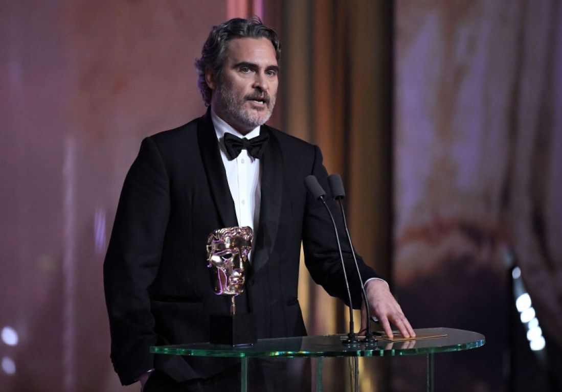 Joaquin Phoenix, a legjobb férfi főszereplőnek járó díj átvételekor. Fotó: James Veysey/BAFTA)