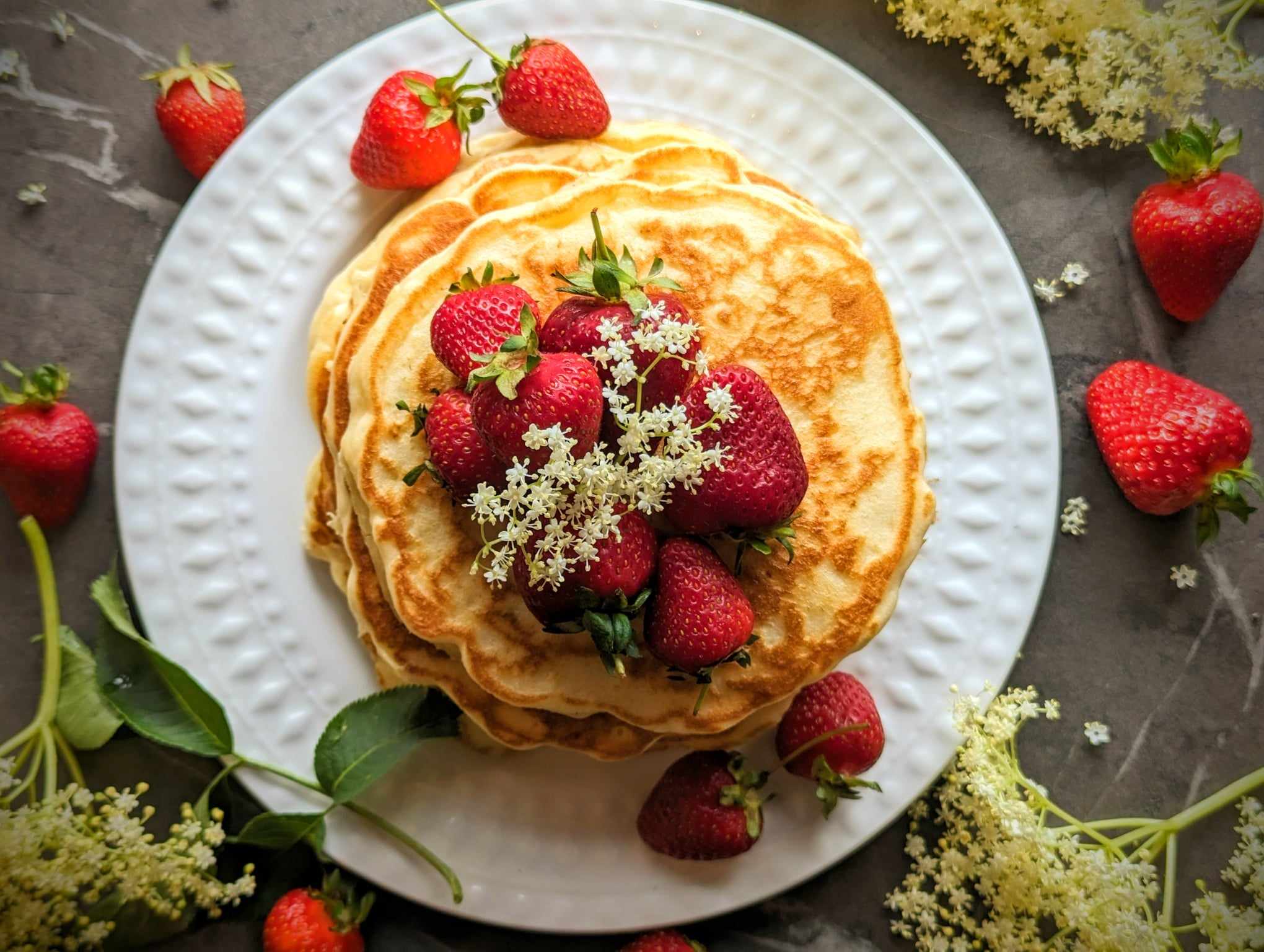 Igazi nyár eleji, frissítő kényeztetés ez a palacsinta, megéri ezzel kezdeni a hétvégi napunkat. A bodza üdesége diszkréten keveredik a vaníliával és eperrel, a juharszirup édessége pedig egybeköti s meg is koronázza az ízeket. Készíthető liszttel, vagy akár gluténmentes lisztkeverékkel, mindkét változat mennyei.