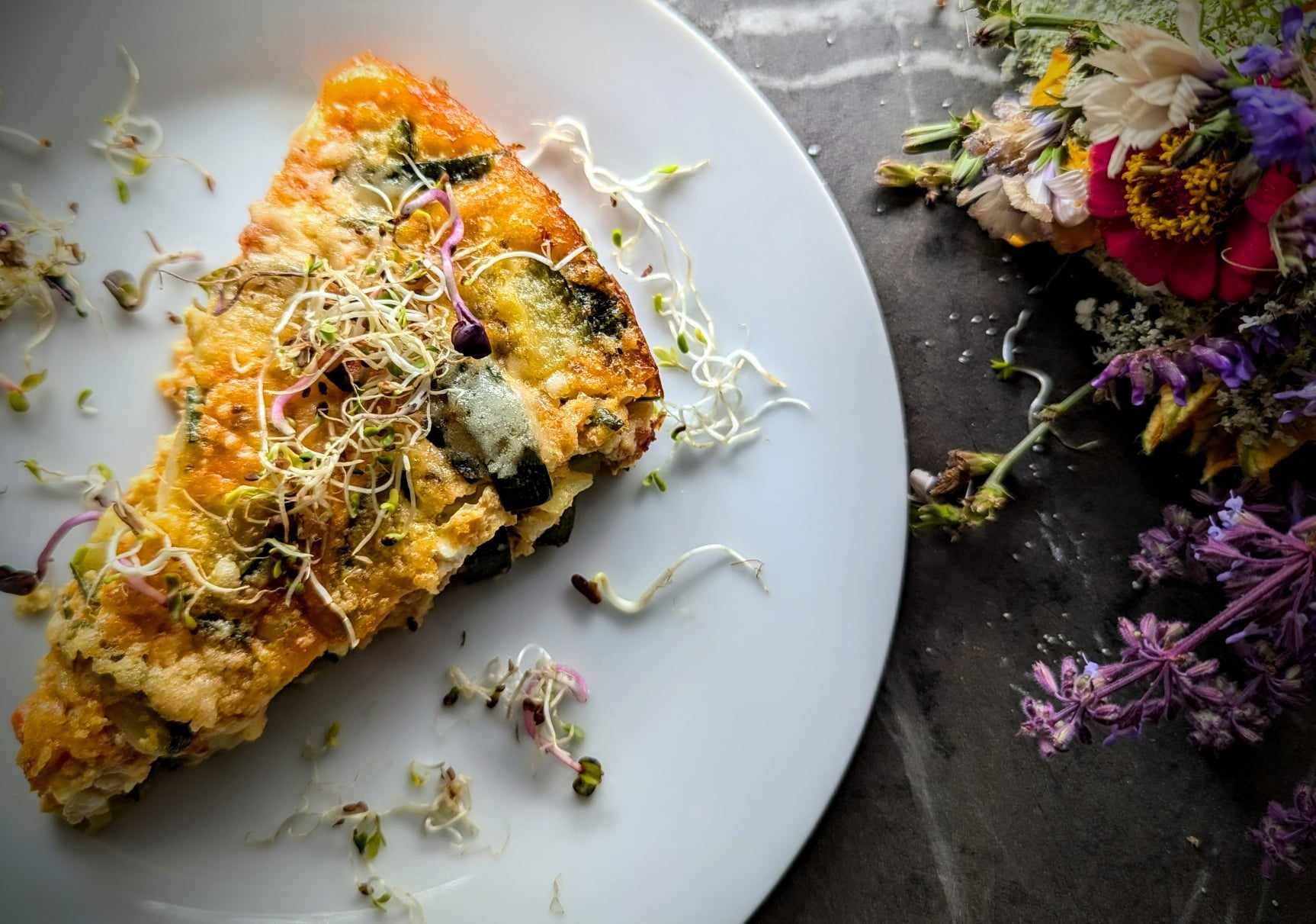 Isteni reggeli, hidegen, melegen fogyasztható, tele van friss, finom nyári zöldséggel. Nagyon jó felhasználási módja a hűtőben hányódó sajtmaradékoknak, amelyeket jobb felhasználni ebbe a finomságba, még mielőtt megkövesednének vagy penészedésnek indulnának.