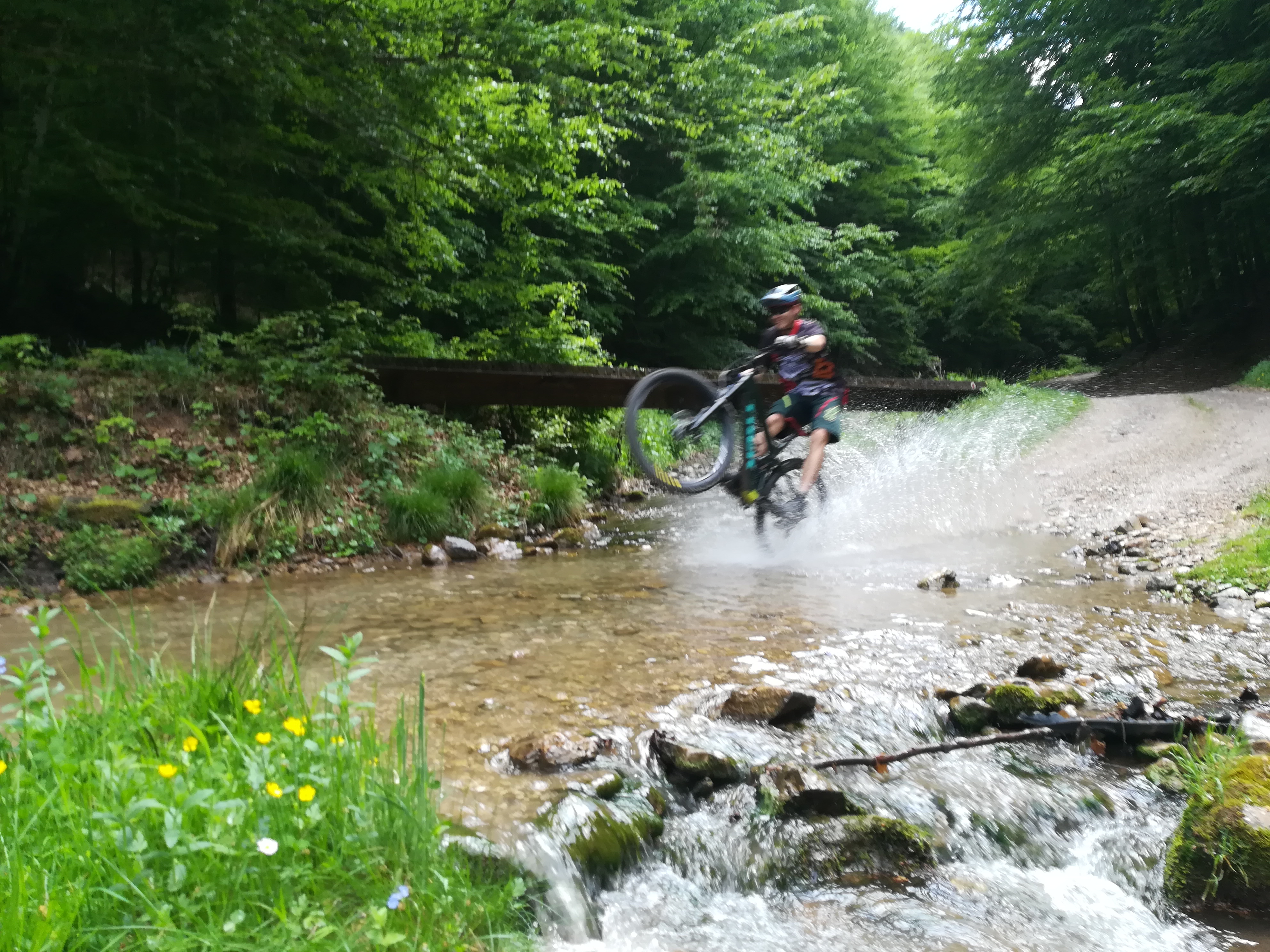 A többnyire makadámúton gondtalanul haladtunk a következő útvonalon: Csucsa – Körösfeketetó – Csarnóháza – Barátka. Az ötven kilométeres össztáv a gyermekeknek sem volt megerőltető, főleg mert volt egy hosszú tűzrakásos, szalonnasütéses pihenő is, mi több, az Ökrök-vízesést is megtekintettük. A keményebb fiúk felcipelték a bringát a természeti és turisztikai látványosságig, innen pedig extrém ereszkedésüknek lehettünk tanúi…
