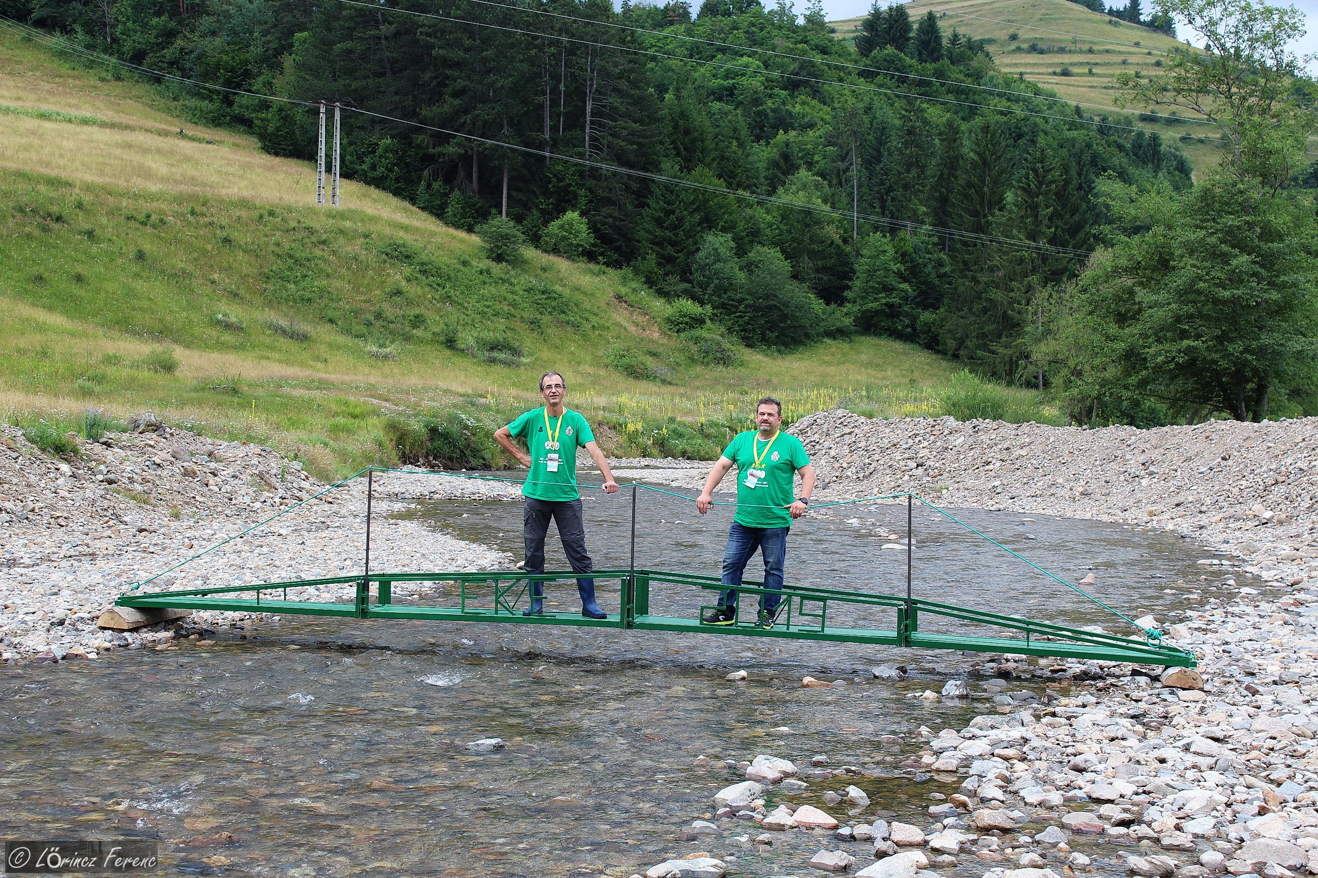 Innen Székelyjó faluig is már csak ereszkedni kellett, igaz, a változatos, helyenként vizenyős terep gondoskodott róla, hogy a cipőnk többször és automatikusan cserélje a lábvizünket. A Székelyjó patak vizétől viszont megkímélt az EKE most kihelyezett, kötélkorláttal ellátott pallóhídja, amelyet az ifjú túratársak rögtön elneveztek Lánchídnak.