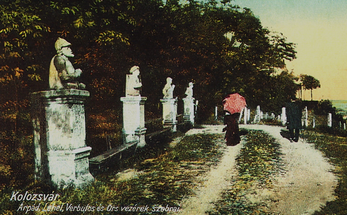 Külön története van a fejedelemszobroknak. Az elhanyagolt kertben azok rendre ledőltek, Sigmondék nem foglalkoztak velük. A város 1880 körül a szobrokat a temetőbe menekítette, ahol az északi kerítés mellett már amúgy is volt egy régi sírköveket begyűjtő kőtár. A még épebb négy szobrot (Árpád, Lehel, Vérbulcs, Örs) 1885-ben Haller Károly polgármester renováltatva kiállította a Sétatér elejére. Az 1893–1894-es román vonatkozású memorandum-per idején román fiatalok a szobrokat megcsonkították. Amikor 1899-ben elkezdték építeni a Sétatérrel szomszédos telken a Felsőbb Leánygimnázium épületét (ma az egyetem kémiai kara), a szobrokat a Sétatér nyugati végére, az úszómedence mellé telepítették. Ezt követően a Városi Szépítőegylet közbenjárására 1902-ben újabb restaurálás után a Fellegvár felső sétányán felirattal ellátott új talapzatra állították őket. Az eléggé kopott szobrokat – mint a magyar múlt emlékeit – 1919 elején ledöntötték, s a töredékeket később elszállították.