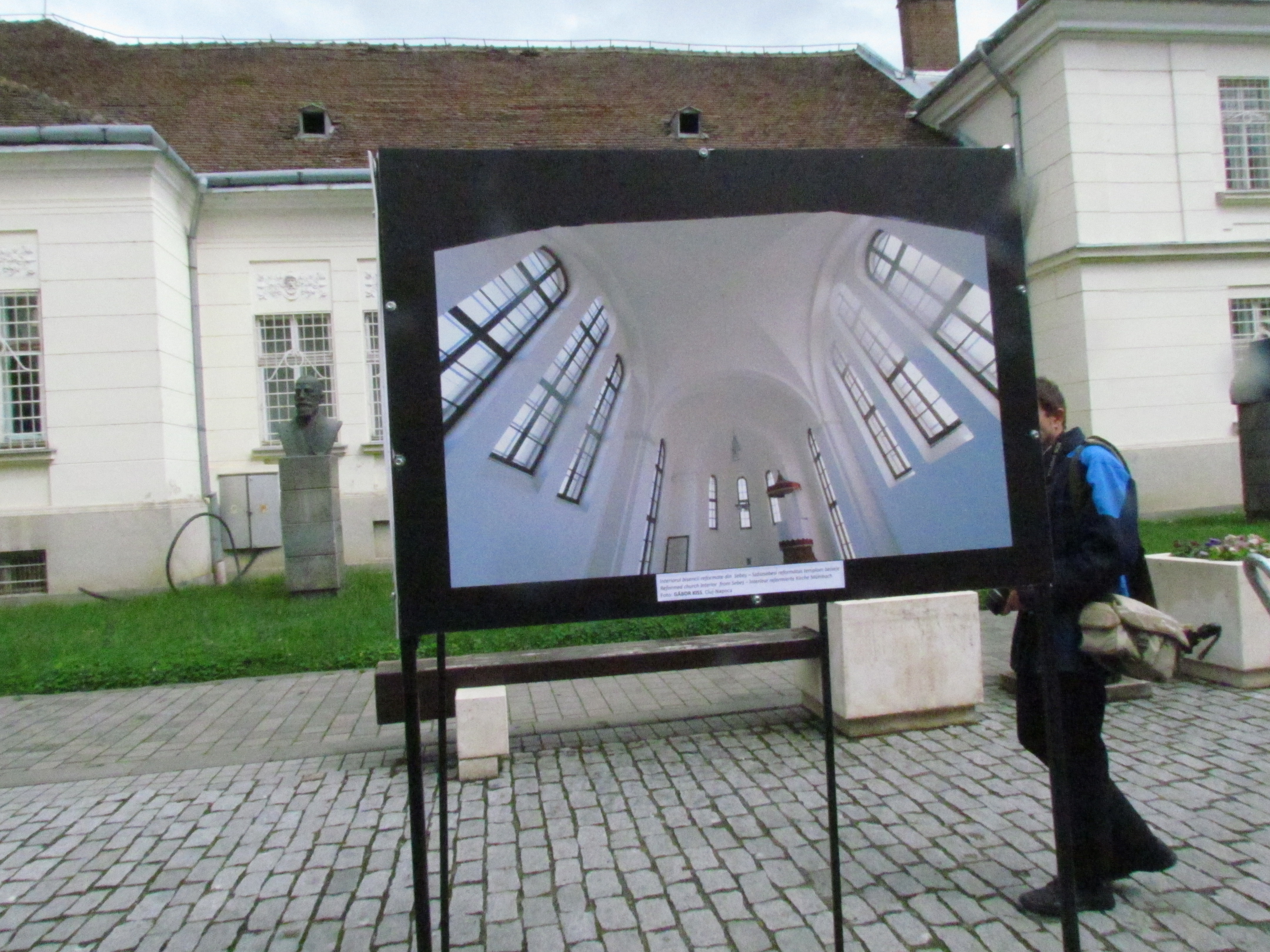 Templomokról készült fotókiállítás a múzeum előtt Gyulafehérváron