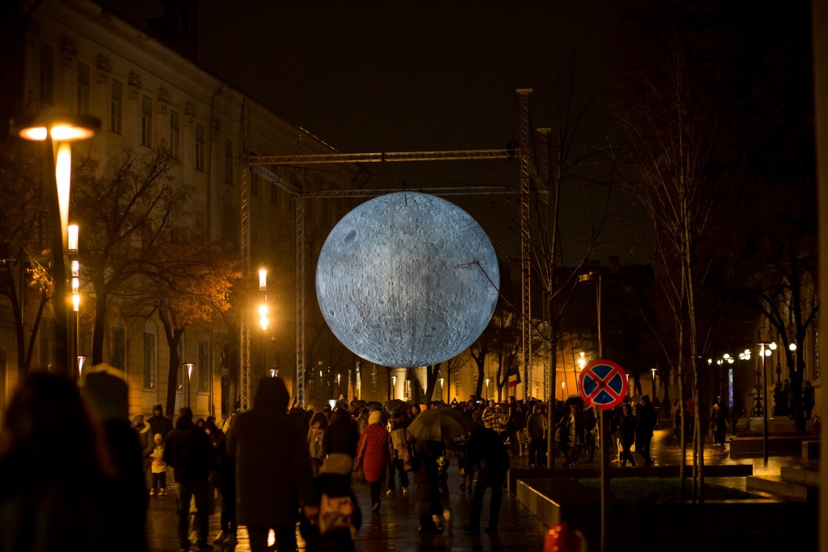 A helyszínen számos látványos installáció helyet kapott, a Farkas utca elején rögtön ismerős „arc” tűnik fel, ugyanis a brit művész, Luke Jerram óriásholdja fogadja az érkezőket. A kolozsváriak talán emlékeznek, hogy a Holdmúzeum (Museum of the Moon) nevű installációt a Lights On-csapat először 2018-ban hozta el a városba, akkor a Piarista templomban kapott helyet. Ez akkoriban a lakosság körében vitát generált, többen azt nehezményezték, hogy az alkotás nem a templomba való. Jerram alkotása most a Farkas utcát díszíti, a szervezőcsapat szerint pedig „tökéletesen illeszkedik az utca építészeti környezetéhez”.