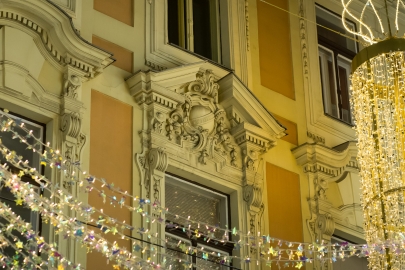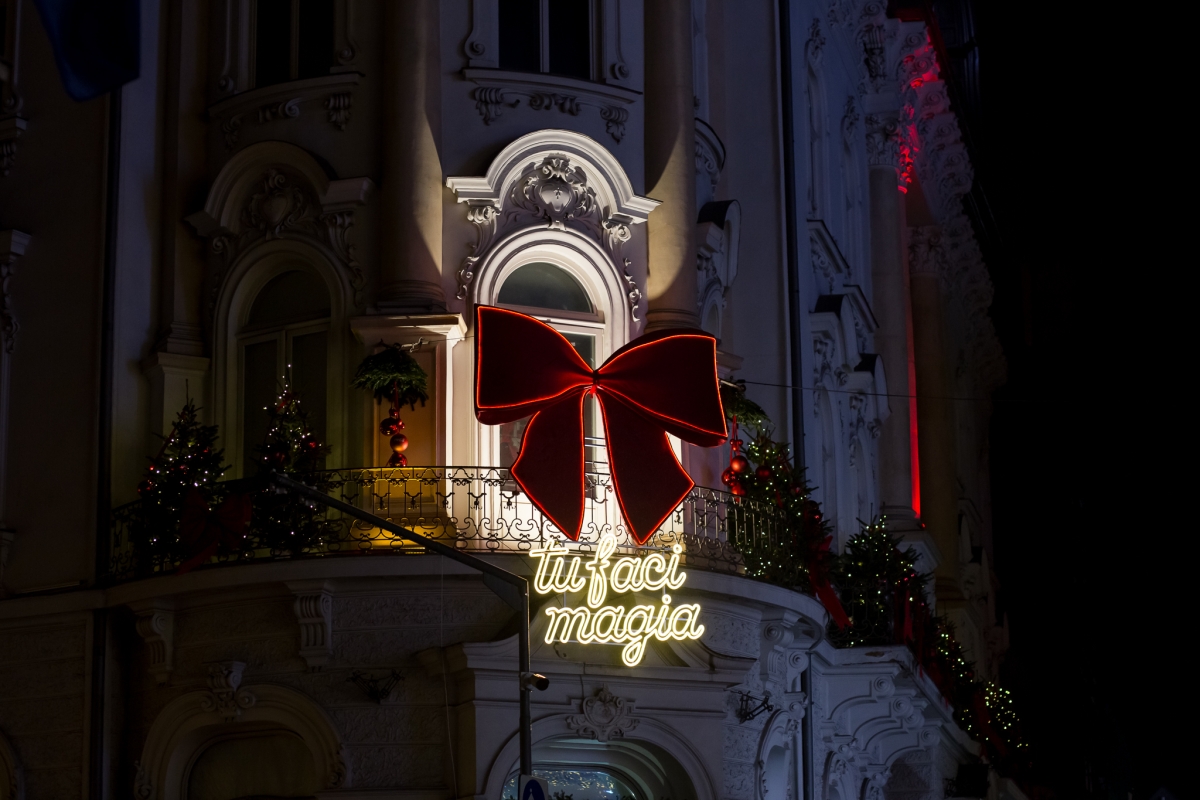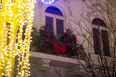 Az utcában a New York szállót is feldíszítették, az erkélyeken piros dekorációkba öltöztetett karácsonyfákat láthatunk, a bejárat fölött pedig a Te teszed varázslatossá (Tu faci magia) felirat díszeleg.
