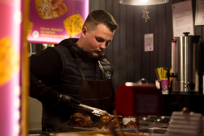 Vasárnap este hét óra körül a központban nagy nyüzsgés volt, utunkat a Főtéren kezdtük, a Karácsonyi Bólygó elnevezésű vásáron, amelyet az Untold csapata szervez. A 2026. január elsejéig nyitva tartó helyszínen fesztiválhangulat uralkodik, a látogatókat különböző attrakciókkal, panorámakerékkel, Mikulásházzal, körhintával, koncertekkel várják. A helyszínen 70–75 kereskedő standjánál kínálnak erdélyi finomságokat, kürtőskalácsot, sajtokat, forralt bort és más hagyományos termékeket, de persze, giccses, műanyag játékokat és dísztárgyakat is találunk. A sajtó és a közösség is sokat beszélt arról, hogy a főtéri vásár drága, hogy erről mi is említést tegyünk, elmondunk néhány számot. Az egyik házikónál a lángost 20–25 lejért kínálják, egy másik standnál a 250 ml-es teáért 12 lejt, míg a forró csokiért 20 lejt kérnek. A szintén 250 ml-es forralt bor 19 lej, az 500 ml-es víz 12 lejbe kerül. A kürtőskalácsot 30–35 lejért kínálják.