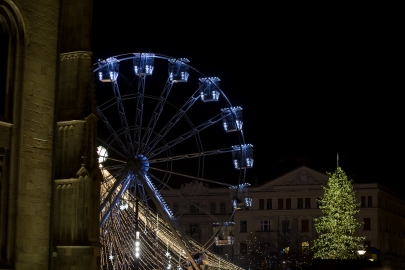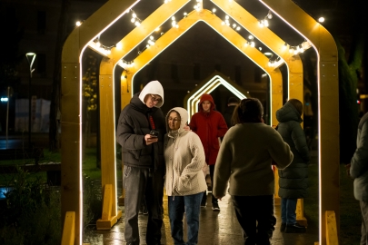 A következő helyszín, ahová ellátogattunk, a Farkas / M. Kogălniceanu utca, ahol a Lights On fényfesztivált szervezik, ezzel együtt pedig a Másik karácsonyi vásárt is. Amint arról korábban beszámoltunk, a rendezvény idén is közkedvelt installációkkal és vásárral várja a látogatókat. A mostani kiadás legnagyobb újdonsága a Light Bus, azaz a fényautóbusz, amely este járja a várost.