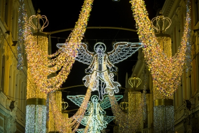 Utunk ezután a Szentegyház / Iuliu Maniu utcába vezetett, ahol idén először állítottak fel karácsonyi installációkat. Az ünnepi, Angyalok kórusa névre keresztelt díszkivilágítás öt angyalfigurából áll, mindegyik több mint négy méter magas. A figurákat tizenkétméteres oszlopokra helyezték el, amelyeket fényfüzérekkel díszítettek. A fényinstallációk előtt az arra járók fotókat és videókat készítettek. Emil Boc Facebook-oldala szerint a látogatók az utcában különleges multimédia-műsort láthatnak és hallhatnak a következő órákban: 17.30, 18.30, 19.30, 20.30 és 21.30.