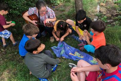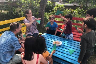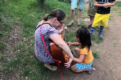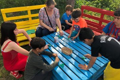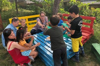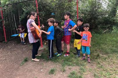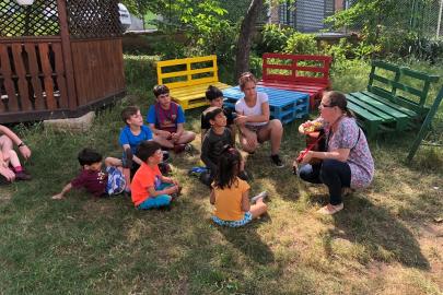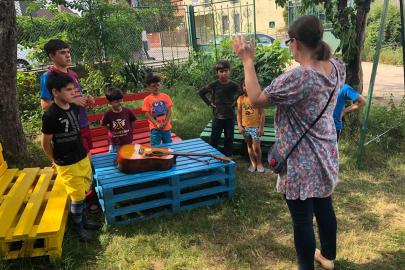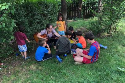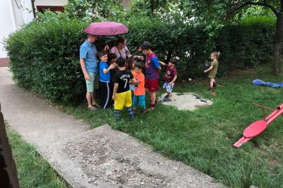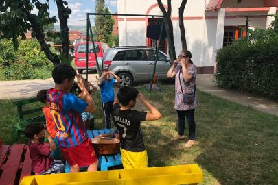 A kolozsvári AKSZA Házban gyermeknapon a kisebb gyerekek Kingricával, vagyis Szabó Kinga játszóházvezetővel daloltak-játszottak, Vigh Beáta jóvoltából.