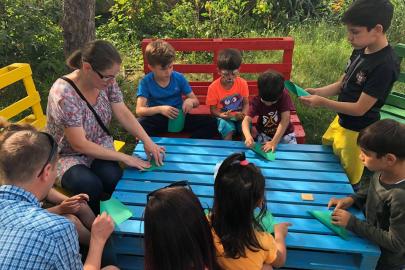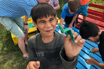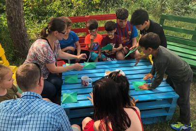 A gyerekek Kingricával képzeletbeli nyári sétára indultak, dalolva mentek ki a mezőre, szaladtak le a patakpartra, bújtak be a rengeteg erdőbe. A patakban békát fogtak, s hogy ne legyen egyedül és ugróversenyt rendezhessenek, ugró papírbékát hajtogattak.