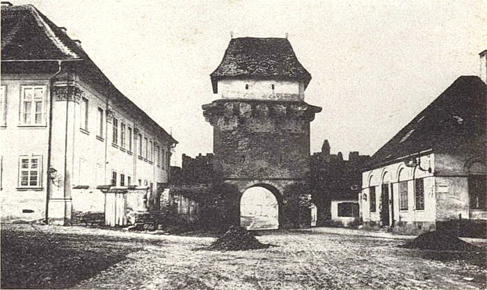 Veress Ferenc felvétele az egykori Magyar utcai kaputorony nyugati, a belváros felé néző oldaláról