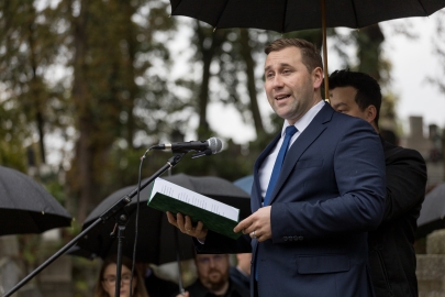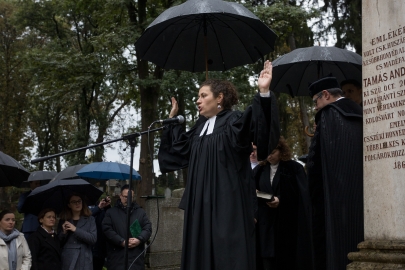 Talpas Botond, az RMDSZ Kolozs Megyei Küldöttek Tanácsának elnöke elmondta: a Csíki Honvédegylet 1869-ben Tamás András alezredes tiszteletére emelte az emlékművet, hogy a nevük és példájuk ne merüljön feledésbe. Ezt a Házsongárdi temetőben helyezték el, mert tudták, hogy az emlék itt nem tűnik el, hanem gyökeret ver. „Az, hogy 176 évvel később is beszélünk róluk, a legnagyobb bizonyíték, hogy áldozatuk nem volt hiábavaló. Ma már új emberek jönnek, akik ügyeskedve akarják megjelölni saját történelmüket itt. A közeli vagy a távoli múltban élt kolozsváriak maradványai akár szemeteszsákban végzik, sírjaikat bedarálják, nevüket elfelejtik. Mi a hétköznapok gondjai közé süllyedve gyakran tehetetlenül és némán nézzük mindezt. Pedig ezek a kolozsváriak voltak azok, akik megtanítottak szeretni ezt a várost és embernek lenni. Ezért fontos minden megemlékezés, amely alkalmat ad arra, hogy erről is beszéljünk. Én 14 évesen, 2002-ben szavaltam először Tamás András emlékműve előtt. Azóta itt vannak a történelmi magyar egyházak, intézmények, az érdekképviselet. A Kolozsvári Református Kollégium kórusa évtizedek óta énekel mára olyan korú diákokkal, akik új évszázad szülöttei. De jártak itt október 6-án az anyaországból, Székelyföldről, szólt már itt hozzánk püspök és világi vezető. Több ezer ember járt itt a Házsongárdi temetőben: kolozsváriak és Kolozsvárt a szívükben őrző emberek. Mindannyian azért jöttek, hogy kapcsolódjanak ahhoz, ami összetart: a múltunkhoz, hitünkhöz, magyarságunkhoz” – fogalmazott.