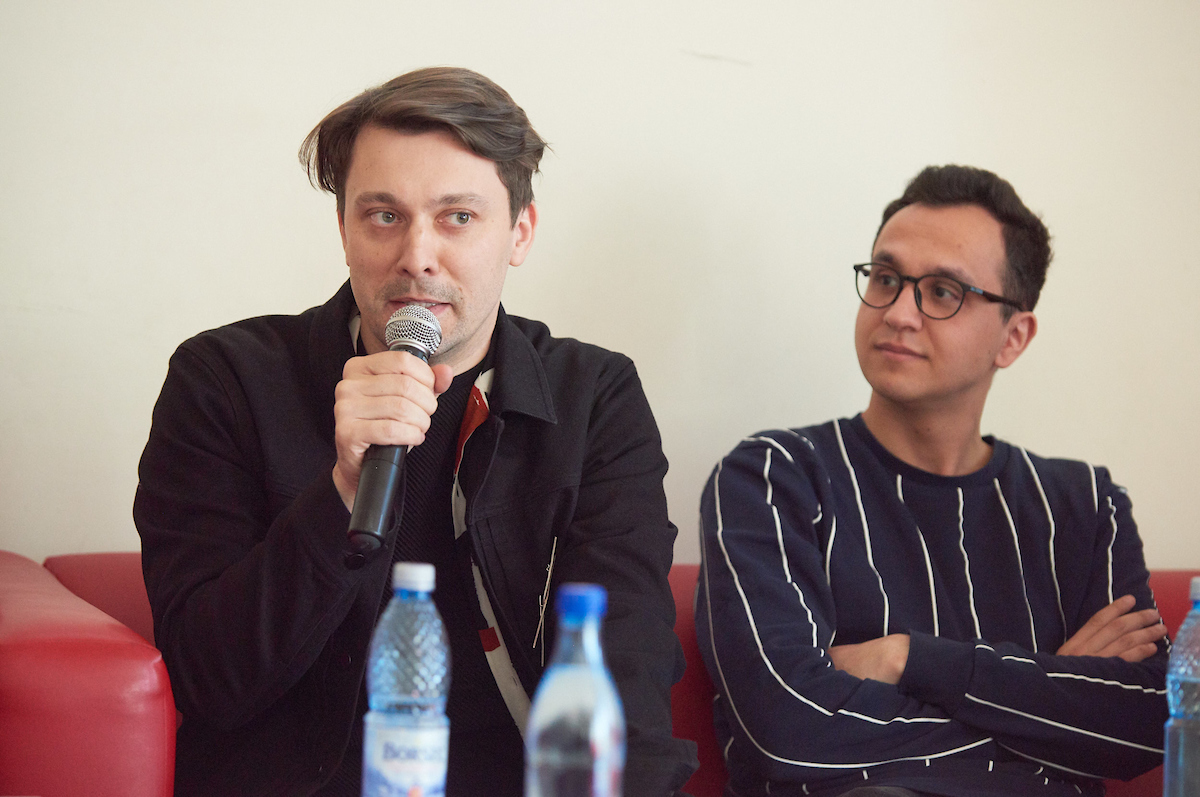 Andrei Măjeri (bal) és Adrian Piciorea a sajtótájékoztatón