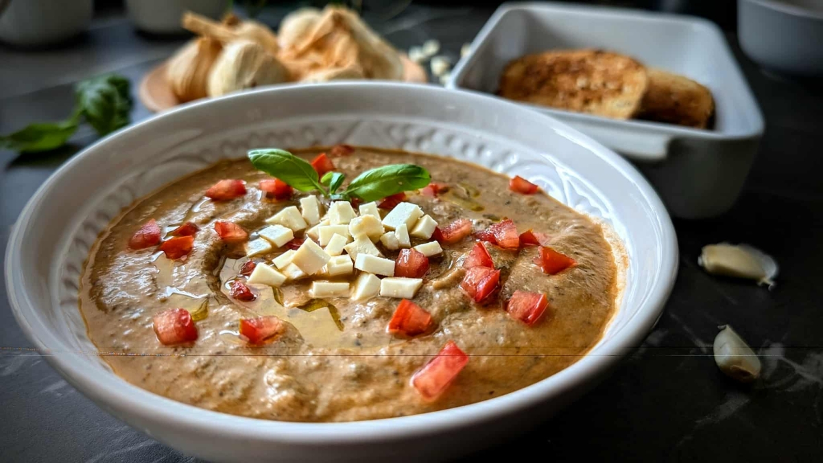 Selymes, fűszeres, ha csípőst használok, akkor rögtönzött orrkidugaszoló, melegítő finomság. A telemeadarabok nem olvadnak szét teljesen, de kellemesen krémessé válnak. Két kis szelet pirítóssal finom és gyors ebéd, ha valami könnyűre vágyunk. Padlizsánkedvelők ki ne hagyják!