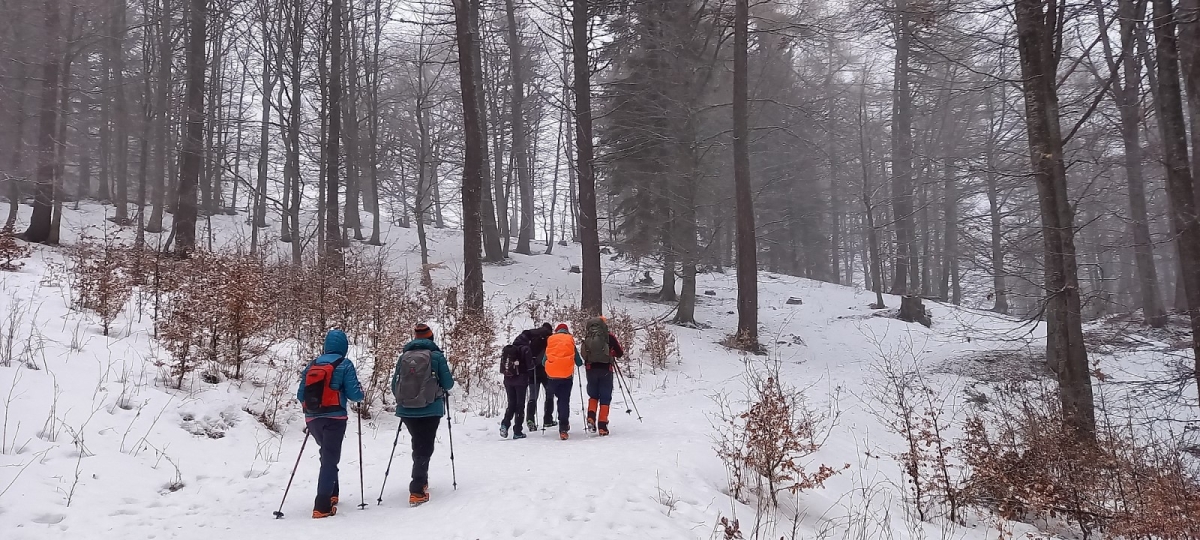 Szombaton reggel nyolc órakor indultunk az első túrára: a cél a Csukás-csúcs meghódítása volt. Az autókat a Bratocsa-hágónál hagytuk, üdvözöltük a nagyszebeni csapatot, a túrabakancsokra rögzítettük a rendkívül hasznos, csúszásgátló „hágómacskákat”, s nekivágtunk az útnak. Kiváló döntés volt a kramponok használata, a vékony hóréteg alatt ott lapult a sunyi jég.