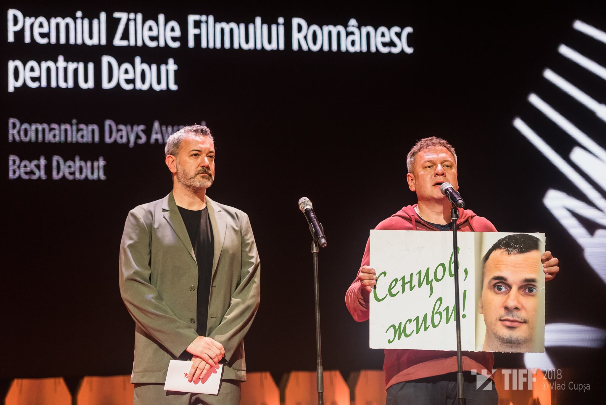 Egyetlen rendkívülinek számító esemény történt csupán a szombat esti, egyébként elég egyhangú és unalmas díjkiosztón: a Román Filmnapok Debüt-díjának átadása előtt a szekció orosz zsűritagja, Alexei Medvedev tiltakozását fejezte ki az ellen, hogy Oroszországban fogva tartják Oleg Szencov ukrán filmrendezőt, akit politikai perben húsz év szigorított fegyházbüntetésre ítéltek, négy éve orosz börtönben raboskodik. Oleg Szencov 21 nappal ezelőtt éhségsztrájkba kezdett, követelve az ukrán foglyok szabadon bocsátását. Politikai manifesztumában Medvedev – aki Szencov fotóját feltartva lépett színpadra – elmondta: szégyelli, hogy orosz, és elítélte országa attitűdjét. Ugyanakkor kitartást kívánt Oleg Szencovnak, és felhívta a figyelmet az éhségsztrájk okozta életveszélyre.