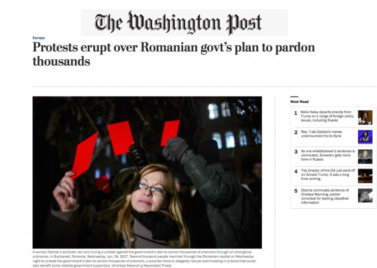 A PSD elnökének amerikai útja nem épp díszmenet: az ottani lapok meglehetősen nagy terjedelemben számolnak be a romániai tüntetésekről, a közkegyelmi törvénytervezet és a Btk. tervezett módosítása kiváltotta közfelháborodásról.