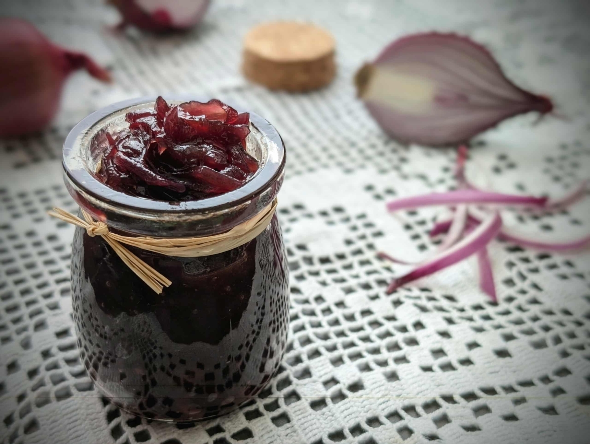 A hagymát megtisztítom, csíkokra vágom, az olívaolajon alacsony lángon megdinsztelem. Tíz perc dinsztelés után hozzáadom a cukrot, és pár percig azzal együtt karamellizálom, majd hozzáteszem a bort, az ecetet, a sót és a babérlevelet. Fedő alatt továbbra is alacsony lángon, fél órát főzöm. Aki szereti, főzhet bele csípős paprikát is, hogy még pikánsabbá tegye a végeredményt. Az idő lejártával a fedőt leemelem, és olykor megkevergetve addig főzöm, amíg a leve elpárolog, s eléri az óhajtott lekvársűrűséget.