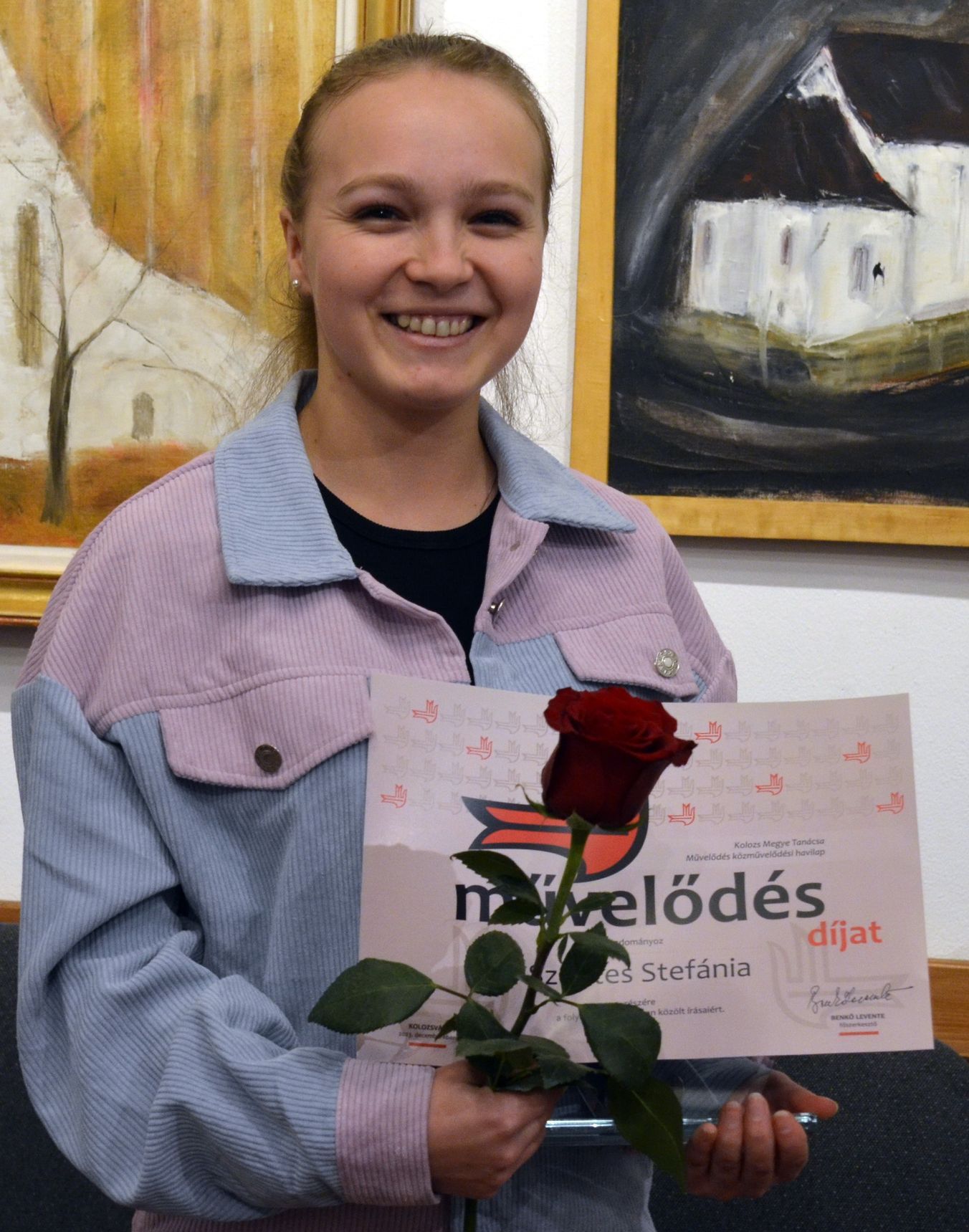 Ezúttal a díj odaítélése azért jelentett meglepetést, mert – amint Benkő Levente, a Művelődés folyóirat főszerkesztője is kiemelte az ünnepségen – a díjazottról a világhálón vagy életrajz-lexikonokban hiába keresnénk szócikket, mert (még) nem találnánk, annyira fiatal. „Annyit tudunk róla, hogy népes családból érkezett. És tehetséges. És a BBTE Politikatudományok, Közigazgatás és Kommunikáció Kar Újságíró szakának diákja. És másodéves. És, hogy a Jóisten gyönyörű hanggal áldotta meg. És íráskészséggel is, természetesen. És akarattal, hogy jó tanáraitól sok jót tanuljon. S hogy egyazon nyelven írjunk, beszéljünk és énekeljünk. Kell-e ennél egyszerűbb és szebb kötődés a gyökerekhez?” – hangzott el a főszerkesztő méltatásában. A Művelődés-díjat idén Szentes Stefánia másodéves újságíró szakos diák vehette át.