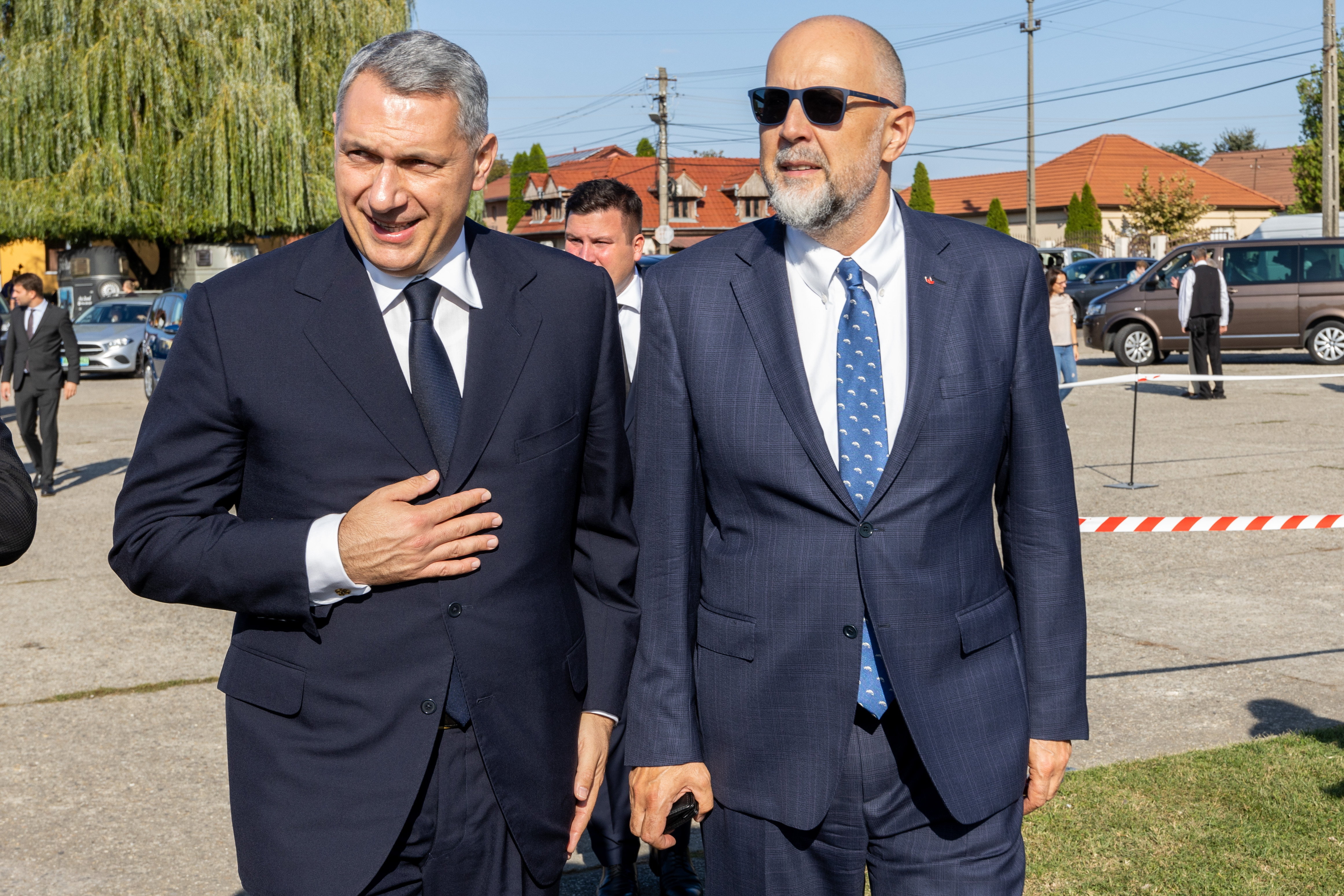 Lázár János magyarországi építési és közlekedési miniszter (b) és Kelemen Hunor RMDSZ-elnök AradonBeszélt arról is, hogy a legnagyobb gondnak jelenleg Románia államadósságát tartja, amely 54-55 százalékos, és közeledik a 60 százalékhoz.